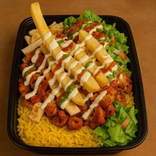 Savor our UGC Special Platter—an irresistible combination of rice, chopped pita bread, crispy fries, your choice of protein, and a fresh salad. Each bite is a journey through Mediterranean flavors, crafted to satisfy every craving.